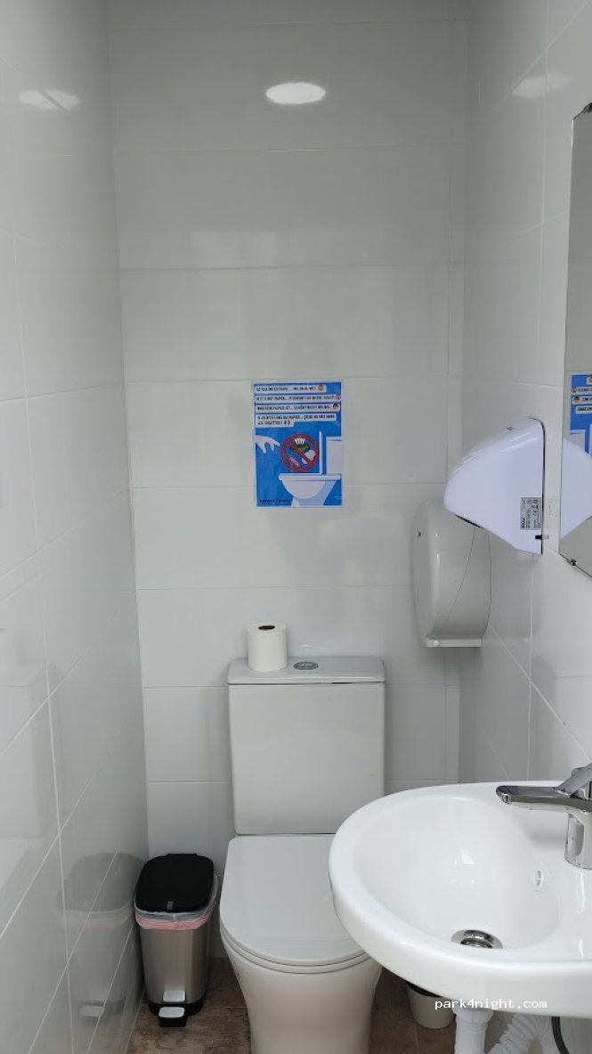 4 étoiles parce-que situé au bord d'un grand rond point avec accès à l'A7. Tout neuf, tout propre, bon accueil, quand même 14 € le stationnement + 2 € électricité. Tous services. Me suis arrêté là en passant, seule aire non pleine à craquer. Ne reviendrais plus en Andalousie à cette époque.