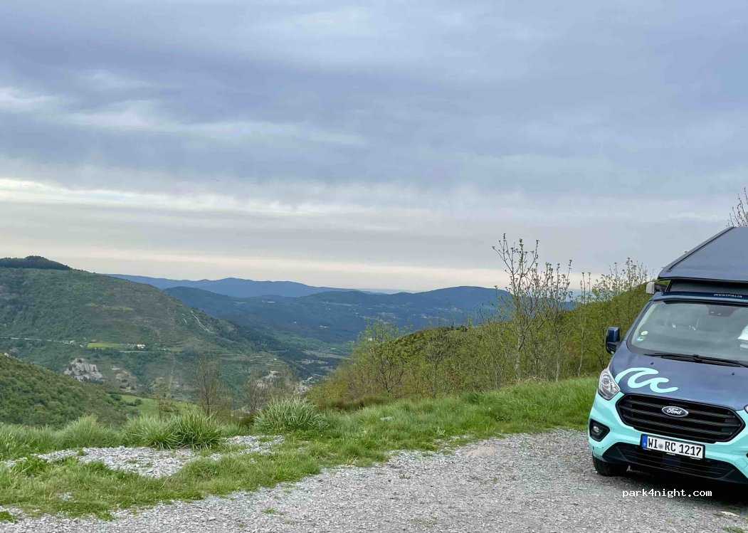 Fantastisch zicht. Teveel wind om buiten te zitten, mogelijks omdat je echt op de kam zit. We zijn 3 kilometer verder gaan staan bij de "big reserve of water in wood" (zie plaats op park4night vlakbij), waar je ook een prachtig zicht hebt, en veel minder wind.