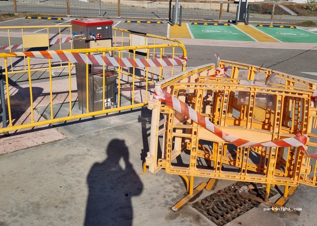 No hay agua disponible desde hace años y los aparcamientos para autocaravanas no son planos. Es un parking en bajada y poco más. Una lástima