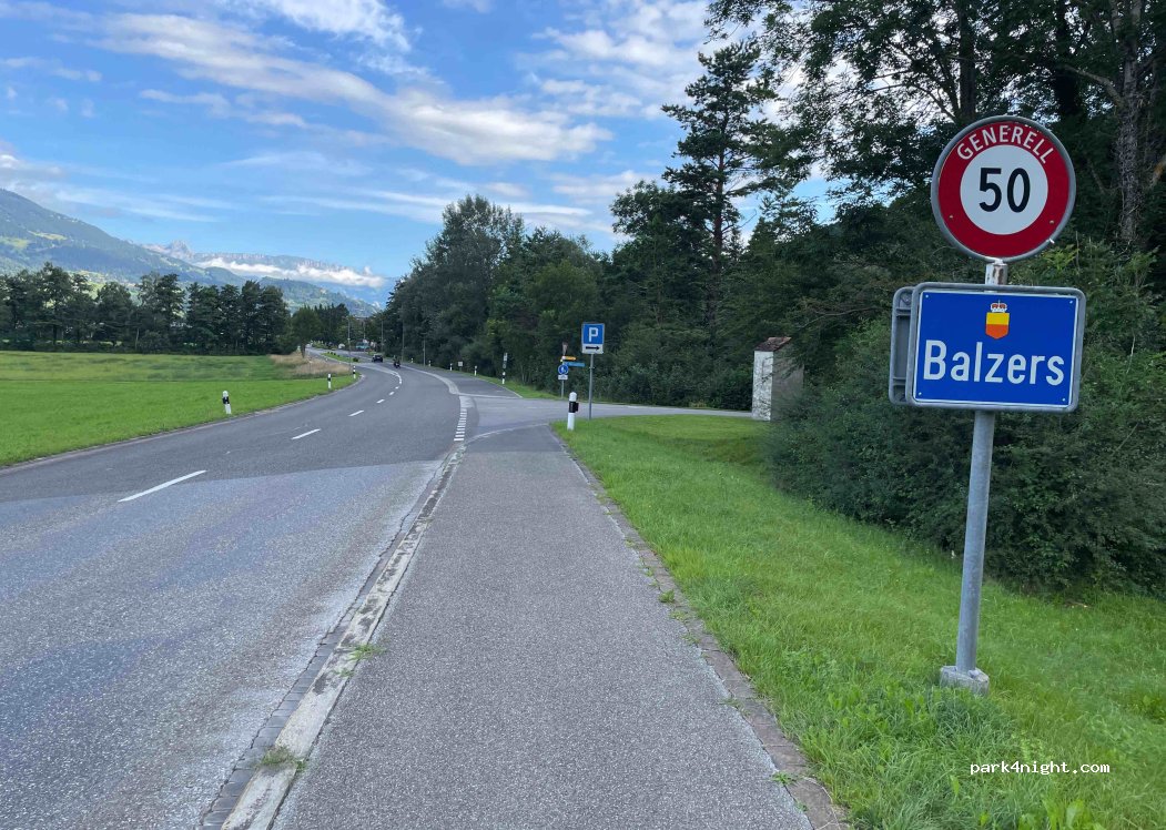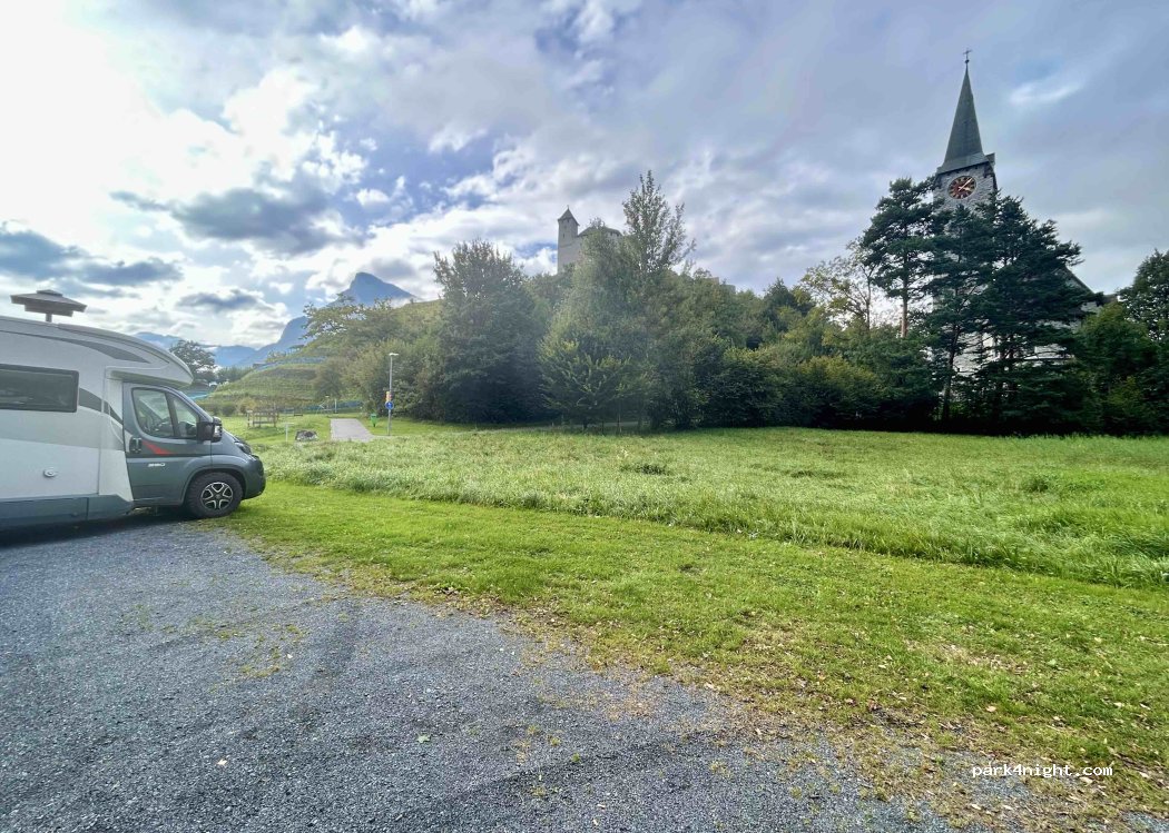 Parked here to explore Balzers and then we spent the night with a few other campers. Road noise is minimal - some parts of the tarmac are sloping but mostly it's fine. Lots of cars seemed to come and then leave shortly after which was a bit disconcerting, but we had a quiet night with no disturbances.