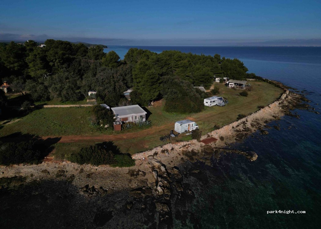 Super Lage. Standen direkt am Meer. Absolut ruhig, bis auf die Wellen :-) Das Gelände sieht etwas wild aus, selbstgebastelte Hütten von Dauercampern, Gebüsch und Gesträuch. Dazwischen aber genug Platz, um es sich gemütlich zu machen. Wir haben für unseren Bus, 2 Personen, eine Flasche Wein und Waschmaschine 500 Kuna bezahlt. Die Zufahrt ist ziemlich steil.
