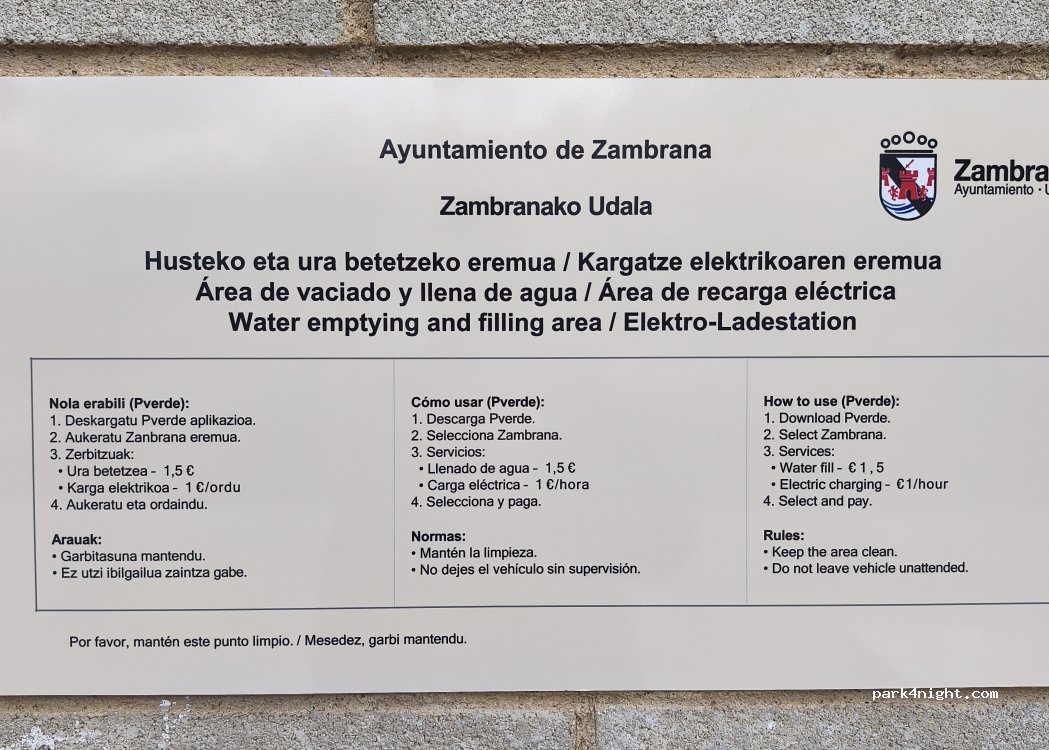 Preis: 17 € (1. September bis 30. Juni) / 20 € (1. Juli bis 31. August) / 24 Stunden (Check-in: 12:00 Uhr, Check-out: 12:00 Uhr). Inklusive Befüll- und Entleerungsservice.