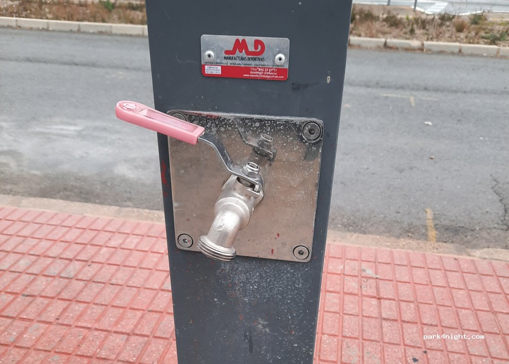 Zona de llenado/vaciado de aguas totalmente gratuita. Dos grifos para recarga de agua de boca ancha, necesitas adaptador si tu manguera es estándar. Gracias al pueblo por este espacio tan poco usual en España para los autocaravanistas.