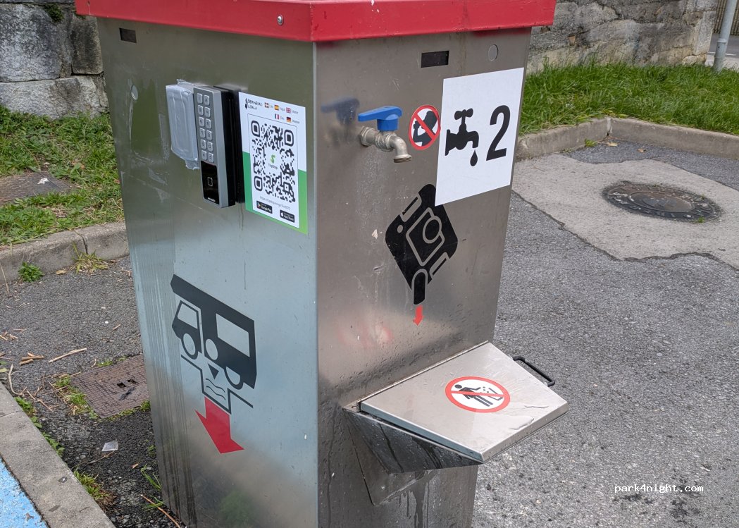Accommodatie met wateraansluiting (vullen en legen) en elektriciteit.