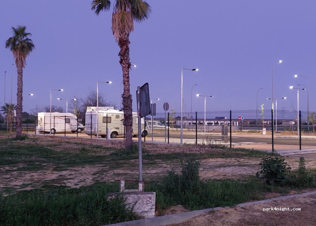 c est un aire qui est toute neuve. Tout est propre , les places spacieuses. Électricité et vidanges 12 €. Peut être un peu de passage car au bord d un rond point. Mais le lieu est un ensemble de résidences neuves et de plus à 8 km de la Plaza d Espagne.. Le Paiement depuis le site Isipay assez simple pour payer et rentrer dans l aire. Le mieux est de s inscrire sur ce site avant.