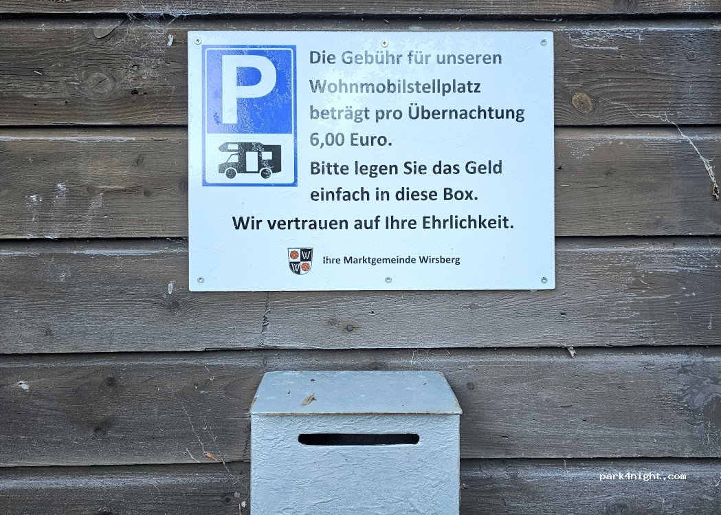 There is a small mailbox with a sign from the municipality of Wirsberg stating that the €6 fee should be deposited on a trust basis.