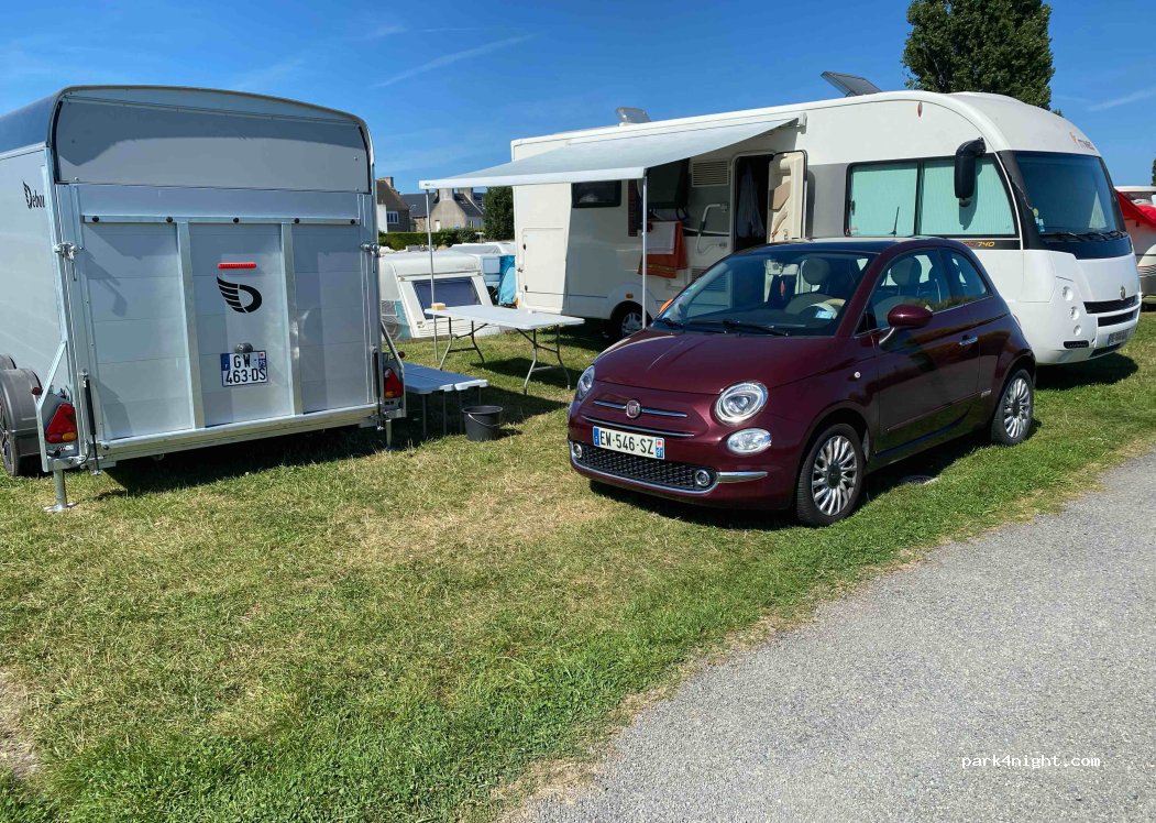 Great campsite very close to the beach. Not much privacy but not a problem. Book in advance especially if you want a front row (to the beach) view. €22 for 2 people plus a dog and water. Didn’t use the facilities so can’t comment on cleanliness. Check out midday latest. Very convenient for the Mont St Michele (which you can see in the distance from the beach) and Saint Malo.