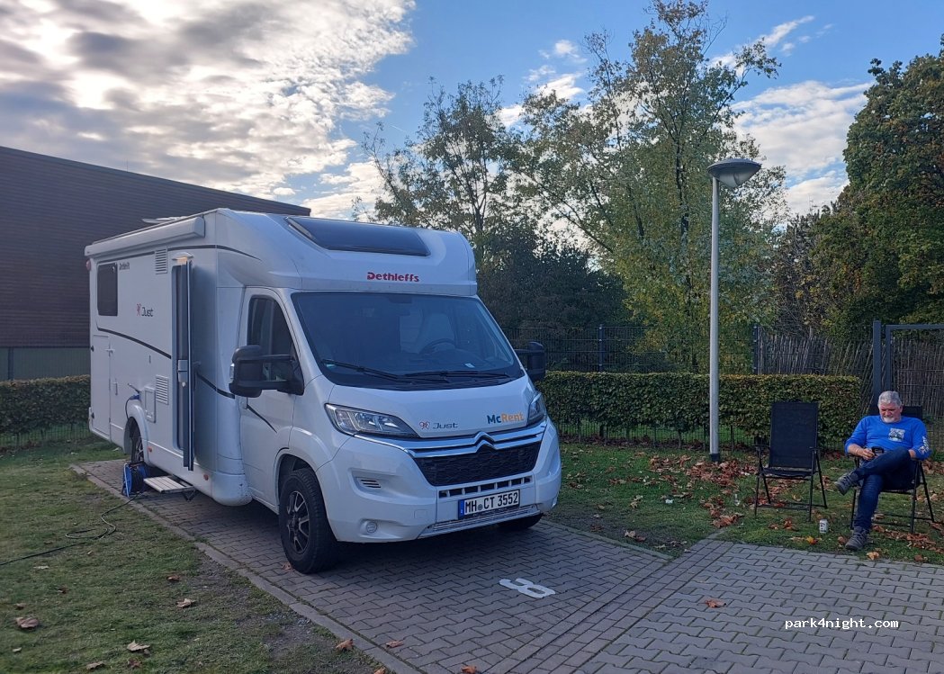 Guter Stellplatz, es gibt Müllentsorgung, sowie Abwasser u Frischwasser u Strom. 13,- pro Nacht. Ticket gibts um die Ecke am Automaten oder beim Schwimmbad wenn dieses geöffnet ist. Direkt am Park u Freibad gelegen. Für's Schwimmbad haben wir nur 2,50 bezahlt p.P. (wegen Corona 4 Stunden Zeitfenster). Allein für die Duschen u Toilettennutzung lohnt sich das.