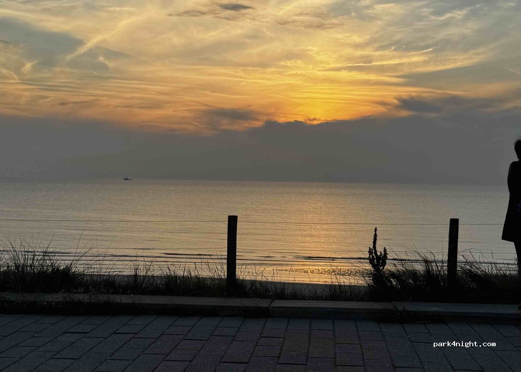 Neben dem mit Schranken abgetrennten Bereich für Wohnmobil gibt es davor und dahinter noch ein paar Tages Parkplätze mit Parkuhr pro Stunde zu bezahlen wenn man nicht über Nacht bleiben möchte. Dort ist auch keine Höhenbeschränkung so wie bei allen anderen Parkplätzen. Das Hunde am Strand nicht erlaubt sind wie im vorherigen Kommentar stimmt nicht wir waren mit unserem und ganz viele andere auch.