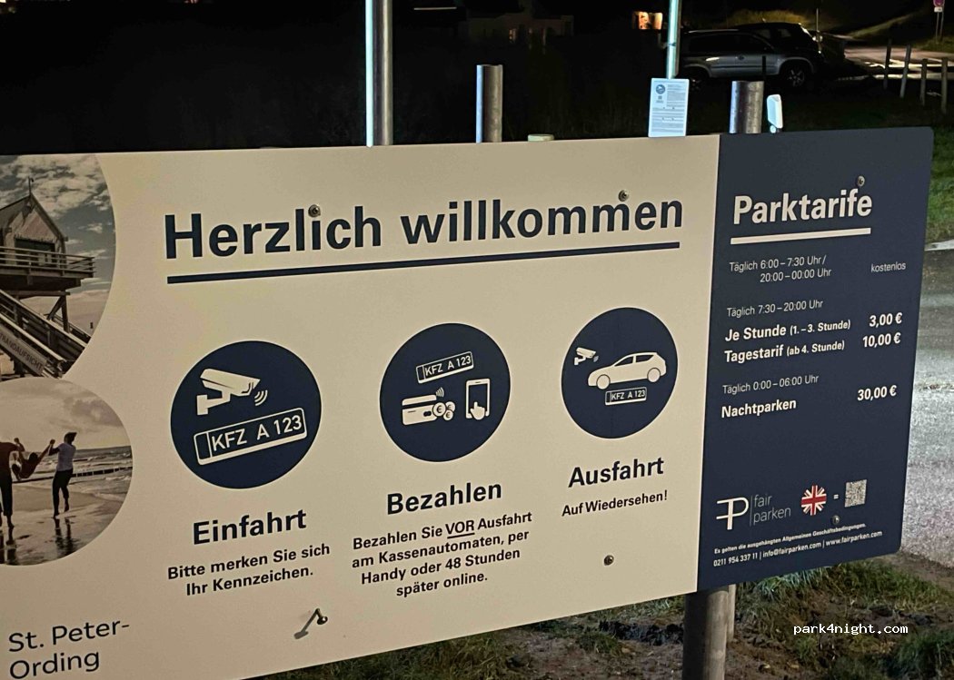 52.- für einen Parkplatz ohne Nichts,finde ich schon arg frech....St.Peter zieht die Preise an....das wurde als Tagesparkplatz ausgewiesen,mit etwas Freundlichkeit beim Kassenpersonal konnte man letztes Jahr noch für nen Zehner die Nacht stehen....