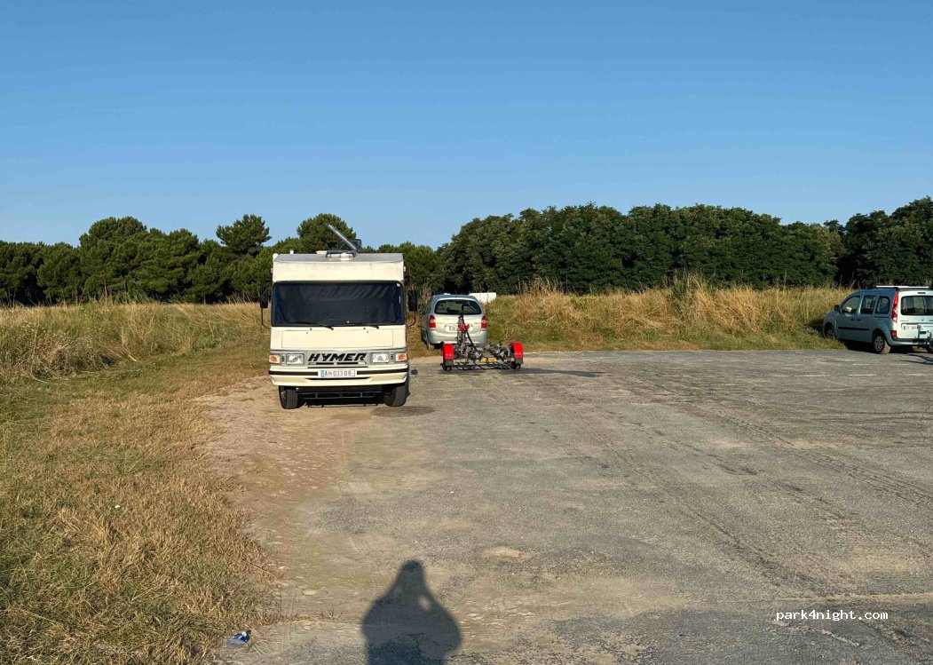 Toujours aussi agréable mais visite de la police municipale. En vertu de la loi littorale et comme c’est une zone natura 2000 le stationnement des véhicules aménagés (gaz eaux grise...) serait interdit. Il annonce un passage fréquent de la police municipale en saison. A voir si l’agent est toujours aussi motivé hors saison