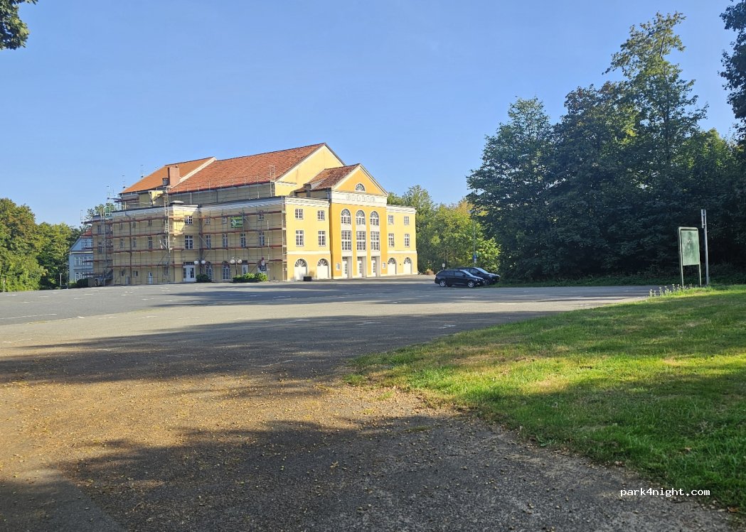 Platz ist sehr groß und fast komplett leer. Sauber ja und direkt am Waldrand gelegen. Das Theater ist wohl zurzeit geschlossen. Sonst könnte der Parkplatz richtig voll sein. WLAN ist kostenlos. Keine VE, nur Abfalleimer. Einige Anwohner, die mit Hunden zum Gassigehen kommen. Für uns für nur eine Übernachtung absolut ok.