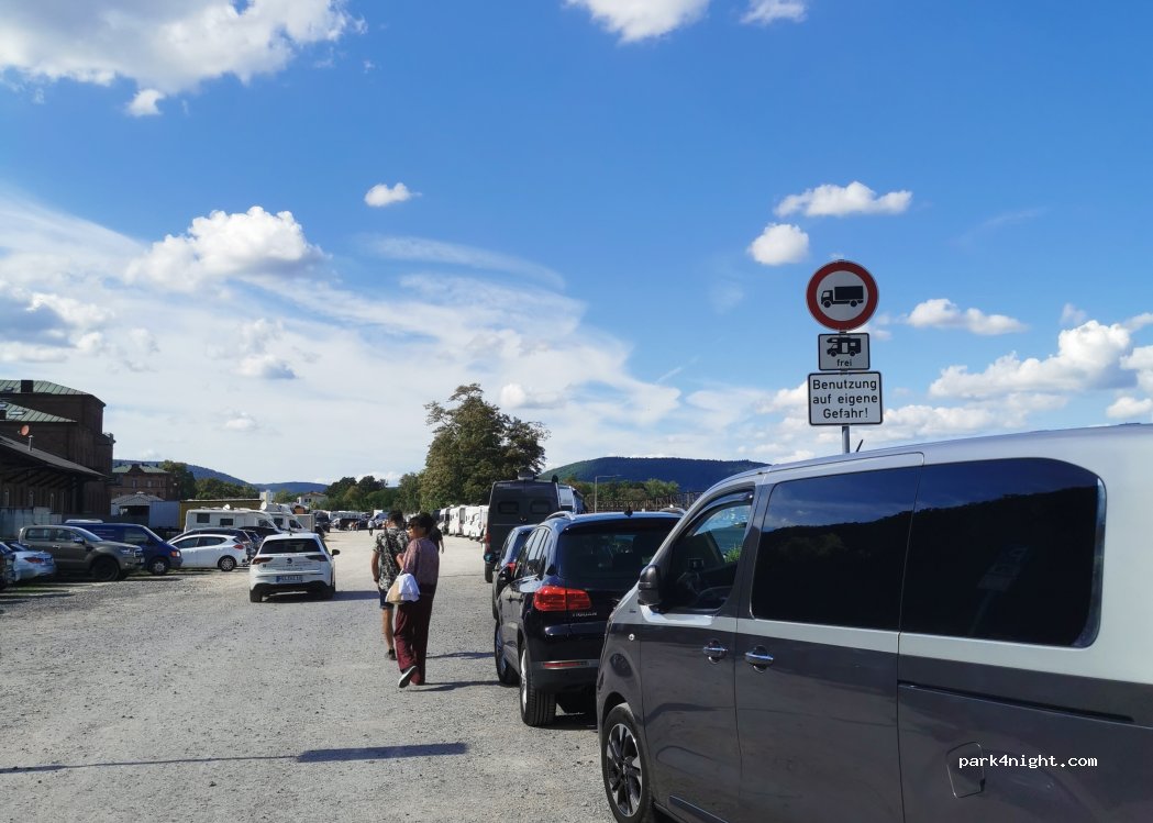 Super Parkplatz, kostenfrei. Stand hier über den Tag. Allerdings fast alles in der Sonne. Ca 10 min Fußweg zum Marktplatz entlang vom Main.
