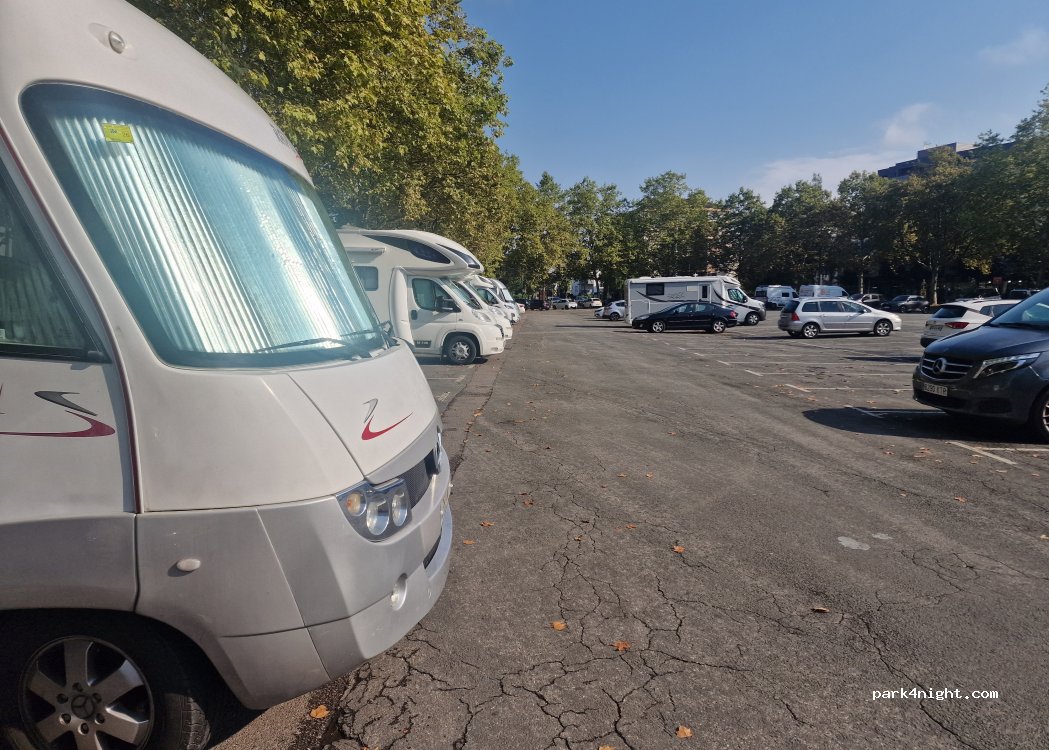 Parcheggio spazioso (anche per grossi camper) gratuito la notte e di domenica. Un po' rumoroso di notte per via del traffico. A 10/15 minuti a piedi dal centro.