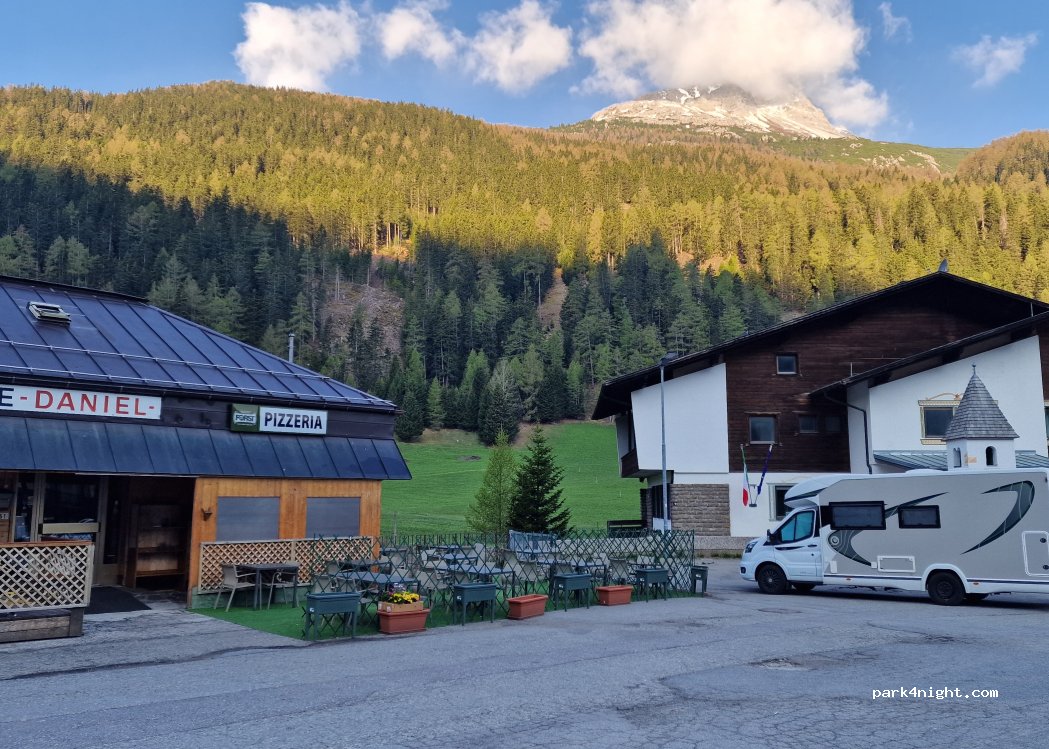 Pizzeria Daniel ist sehr lecker. Als wir abends ankamen war auf dem Parkplatz viel Betrieb. Wir fragten ob wir über Nacht stehen bleiben dürfen was bejat wurde. Nachts teilweise laut. Liegt halt an der Durchfahrtsstraße wo auch Lkw- Fahrer übernachten. Frische kühle Luft - herrlich. Wir sind aber auch in der Nebensaison - sonst wird hier sicher mehr los sein.