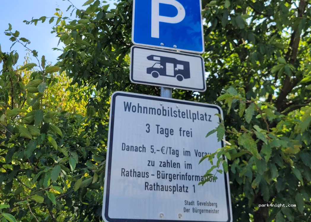 Wer einen Parkplatz für die Durchreise benötigt ist hier richtig. Der Parkplatz liegt zentral und dennoch bei einem ruhigen Park. Wer am Tag danach zum Bäcker will, hat lediglich 300 Meter zu Fuß zu laufen. Und das auch noch kostenlos für drei Nächte!