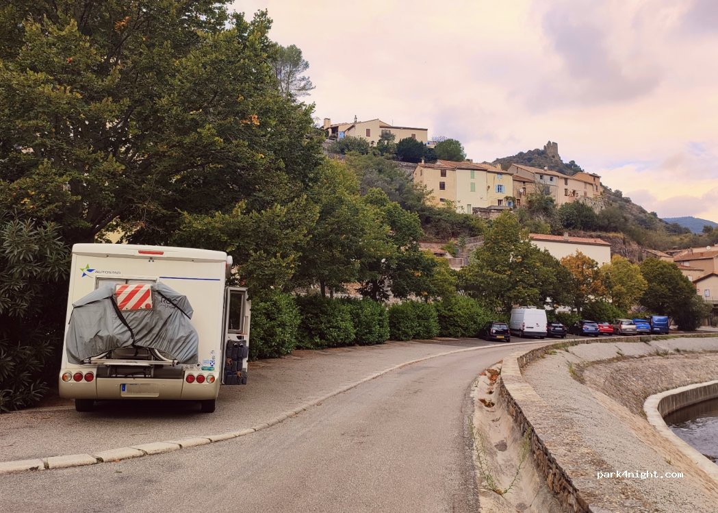 Parking à l’entrée du village stationnement possible. Nuit possible hors saison. Point d’eau en hauteur dans des toilettes "turc", mais assez accessible pour recharger le camping-car.