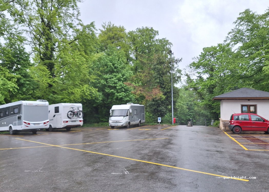 4 emplacements réservés aux CC sur ce pk en asphalte directement à proximité du château (à visiter absolument !). Navette pour y monter. Sinon 20 min à pied... Absolument calme la nuit ! Apparemment gratuit.
