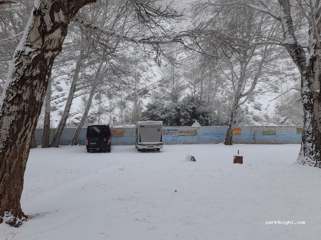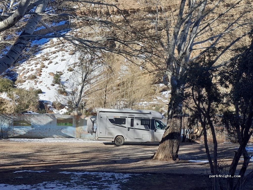 une excellente adresse pour s'arrêter aux gorges du Dadès le camping est vaste quand nous y étions il n'y avait que trois camping-car les toilettes sont propres le personnel est au petit soin le restaurant est très sympa avec une cheminée au bois les brochettes bonne et copieuse tajine végétarien sur demande. pour les camping-caristes il est au-delà des fameux lacets du Dadès. doucement ça va.