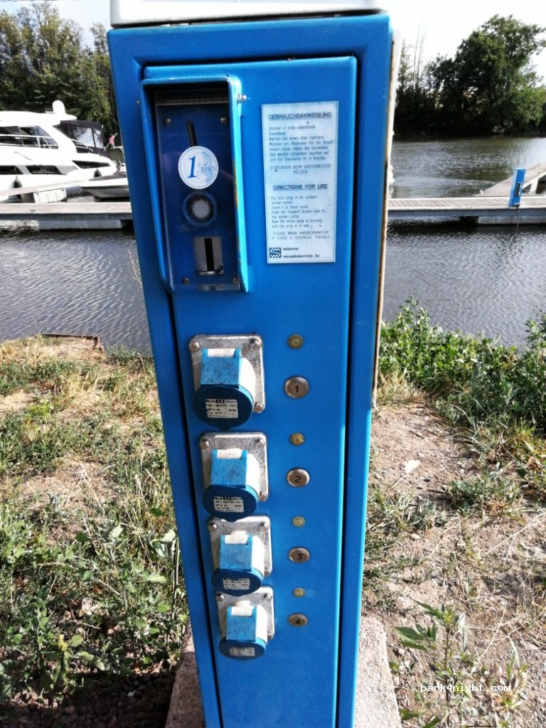Naja, die Lage sind eigentlich 5 Sterne. Die Ausstattung wären auch noch 4 Sterne, wenn alles funktionieren würde. Die Bezahlsäule ist auf einem völlig zugewachsenen Hügel, wenn man sich durch die Disteln geschlagen hat, kann man lesen „defekt“. Die Standgebühr soll man im Kran der Slippanlage einwerfen. Fensterschlitz in 3,50 Höhe, No Go, 10,- € kann man verlangen, wenn alles passt.