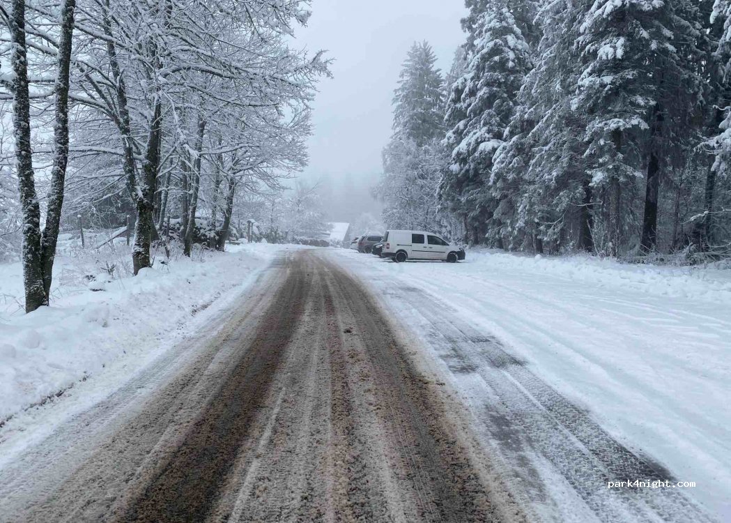 Grand parking de randonnée, très calme. Directement sur les pistes de ski de fond, très bon restaurant