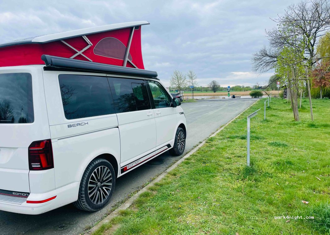 Quiet parking by a small lake. Close to the motorway and good for one night. Costs 4€.