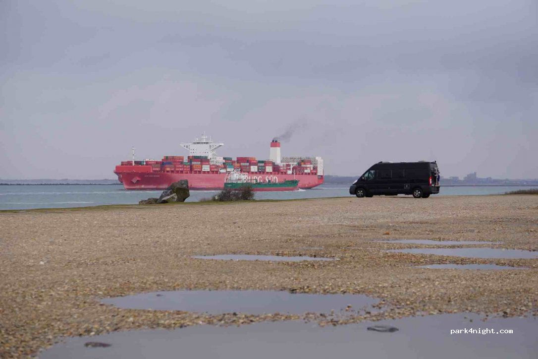 Another night here: the spot is magnificent but the noise pollution is extreme. The constant deep rumbling and droning noises (giant ships, industry, windmills, dredging, lorries) disturbed my sleep quite a bit. Maybe earplugs would help.