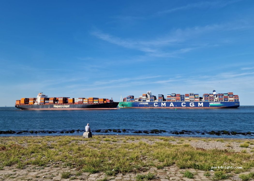 The windmills, ships and nearby container terminals make a lot of noise throughout the night. Hardly any visitors after 20:00. The morning is great, seeing the sun go up over the constant stream of large and small ships.