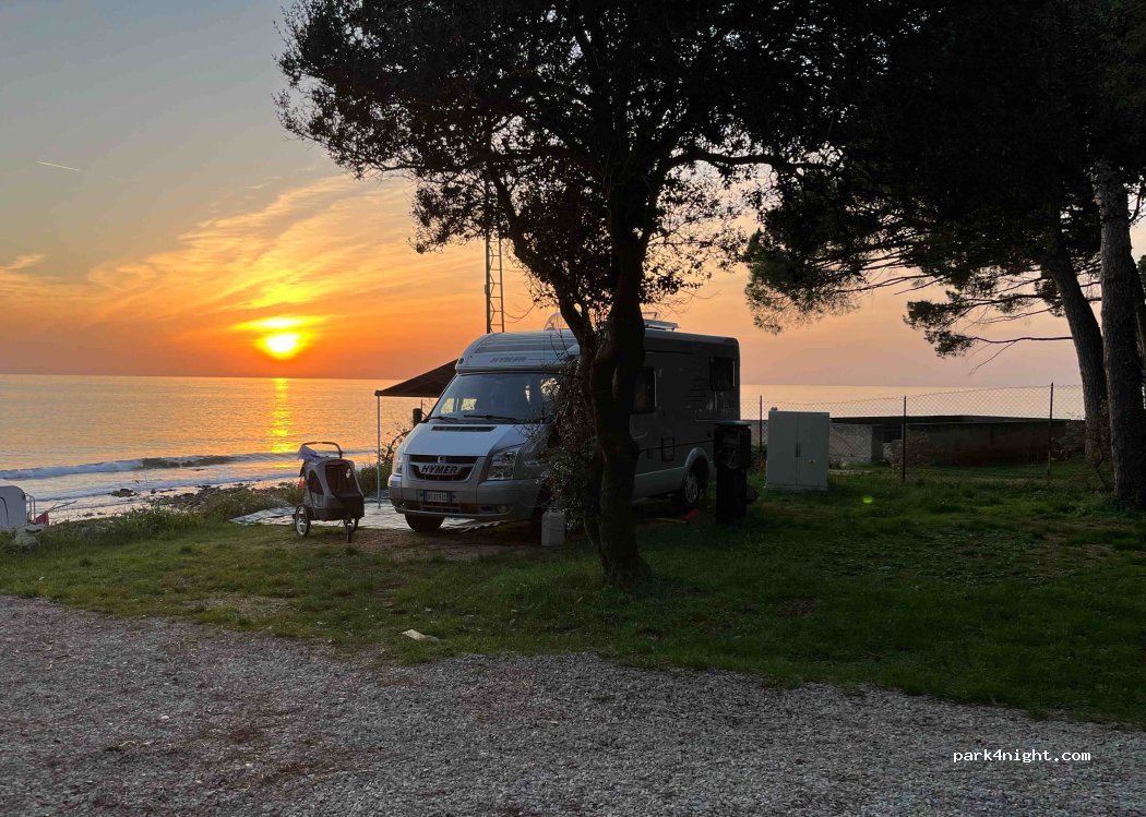 Netter kleiner Campingplatz mit Stellplätzen direkt am Meer. Hauptsächlich Dauercamper, ausreichende Anzahl an sanitären Anlagen die auch sauber sind. Bistro Don Giovanni sehr zu empfehlen. Kleiner Supermarkt vor Ort. 45 Minuten zu Fuß nach Novigrad, schöne Fahrradwege. In der Zwischensaison Bulli mit 2 Personen und Strom 27 Euro/Nacht