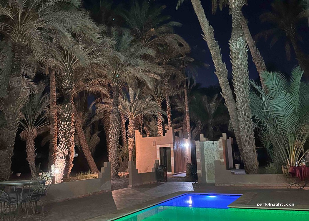 Cadre idyllique, ombragé dans la palmeraie, calme absolu, service impeccable, sanitaire propres, douche chaude, accueil chaleureux autour d'une tasse de thè, pain frais offert le matin, bref la grande classe. Nous recommandons vivement cette étape ressourçante. (Nicole et Daniel, Suisse, 11 avril 2019)