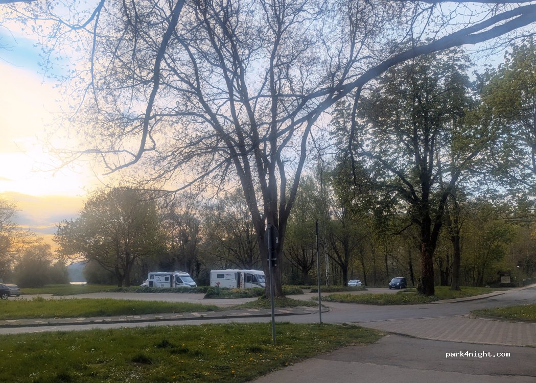 Schöner Stellplatz, direkt an einem See, der zu einem Spaziergang einlädt. Supermärkte fußläufig gut zu erreichen. Die Bahn fährt in unmittelbarer Nähe, hat mich aber nicht gestört. Vielen Dank an die Stadt. Laut Beschilderung parken für max. 24 Stunden.