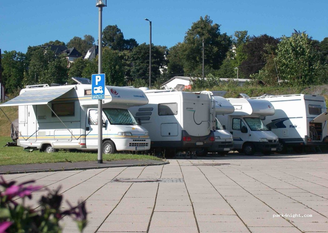 Gepflegter Stellplatz von Bad Lobenstein, Untergrund Pflaster, aber auch Rasen möglich. Bei Erhebung einer "Kur"taxe pro Besucher wäre die Bereitstellung eines Platzes "ohne" Verkehrslärm jedoch attraktiver.