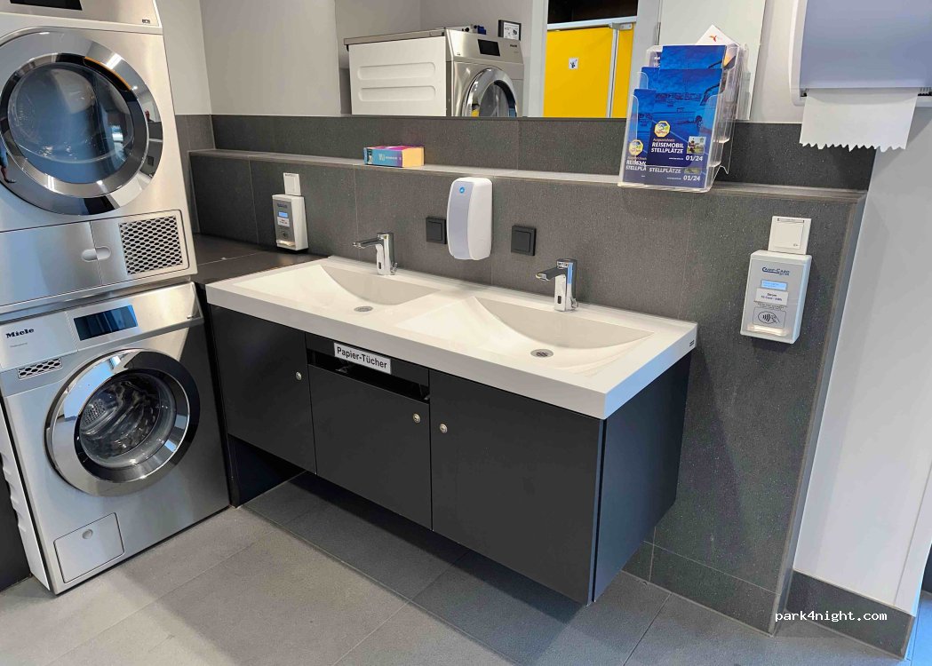 Sauberer und moderner Stellplatz. Buchung vor Ort am Automaten möglich (Zahlung mit Karte). Sanitär neu und sauber, leider aber an den Handwaschbecken kein warmes Wasser.