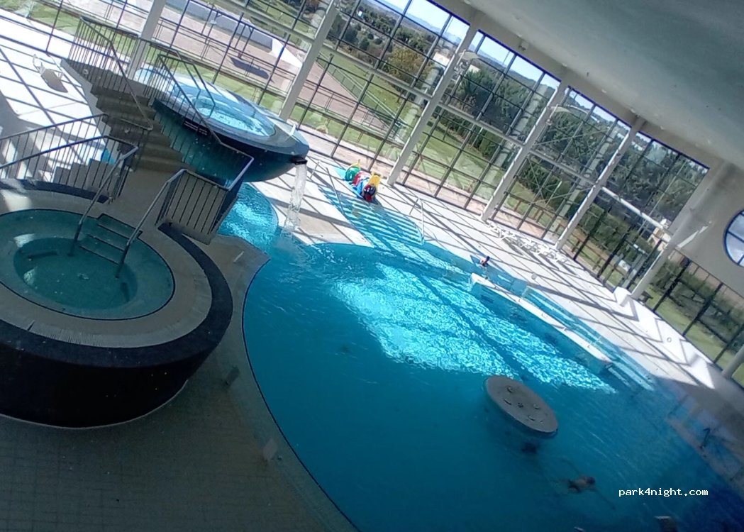 Zona de parking sin mas, la zona de vaciado de negras una porqueria, desbordaba la mierda, por lo demas zona tranquila con instalaciones deportivas al lado y el centro termoludico carisimo, 18 euos adultos y 8 niño de 11 años.