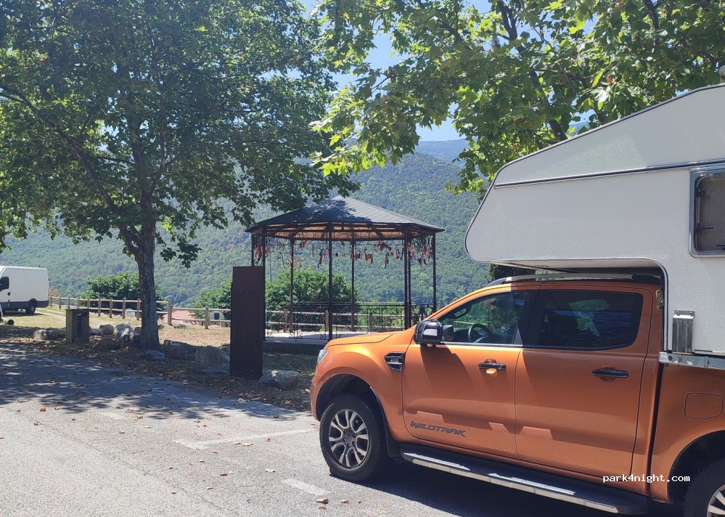 Emplacement parfait, même pour grand camping-car. il y a une fontaine pour faire le plein d'eau et pour les vidanges l'aire de Prades est proche. Endroit très calme à proximité de l'épicerie bio. Le village est à visiter.
