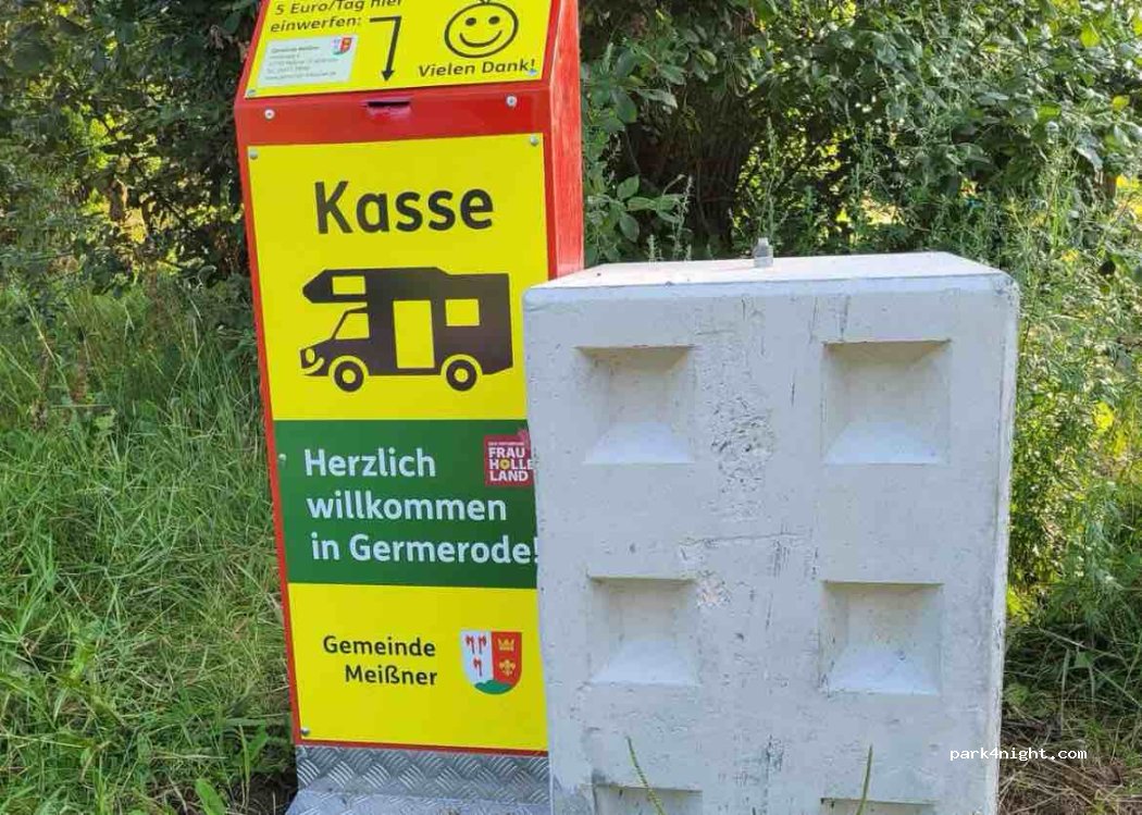 Ein sehr schöner und kostenloser Stellplatz am Rande von Germerrode. Der Platz ist relativ eben und es gibt eine stromsäule mit 4 Anschlüssen. Auf dem Platz ist ein Gulli um das Grauwasser zu entsorgen. Eine weitere Möglichkeit zur Ver und Entsorgung ist im Ort beim Dorfgemeinschaft Haus. Es gibt keine Mülltonnen, also nehmt den Müll wieder mit. Danke an die Gemeinde.