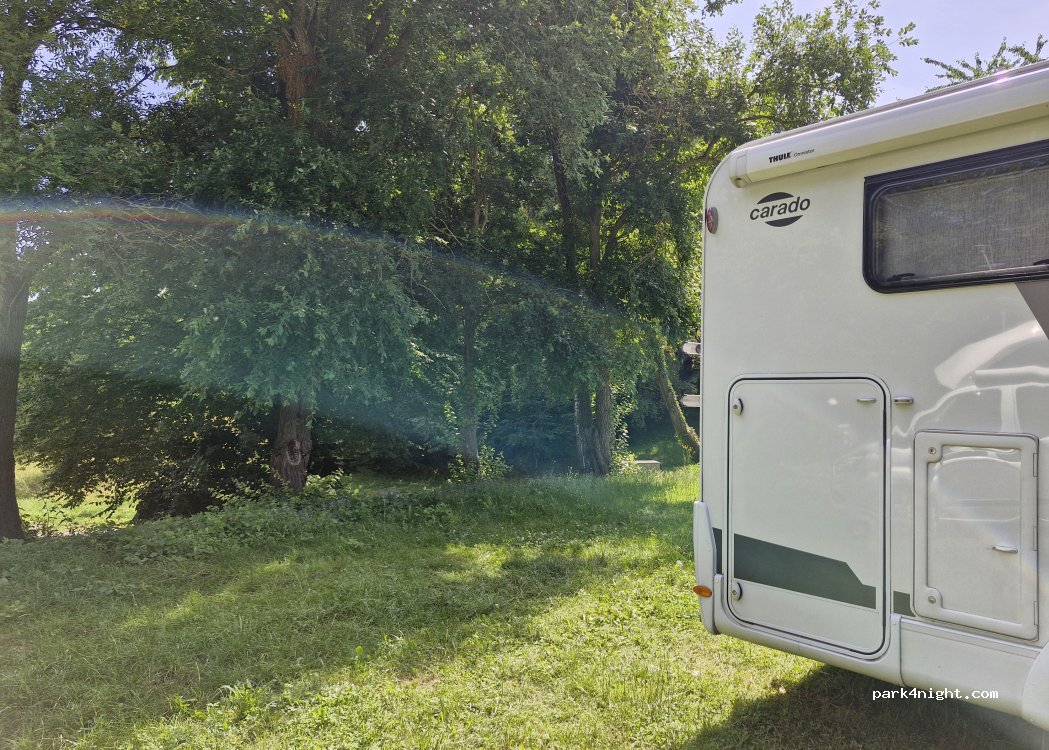 Wir sind kurz vor Mitternacht angekommen, es waren noch 3 weitere Wohnmobile auf dem Stellplatz. Es hatten aber alle mehr als genug Platz. Die Gebühr von 5 Euro pro Übernachtung sowie die Stromgebühr ist geblieben. Aktuell gibt es viele Mücken, Fliegen etc., der Rasen ist nicht gemäht, es gibt einige Disteln und Brennnesseln.