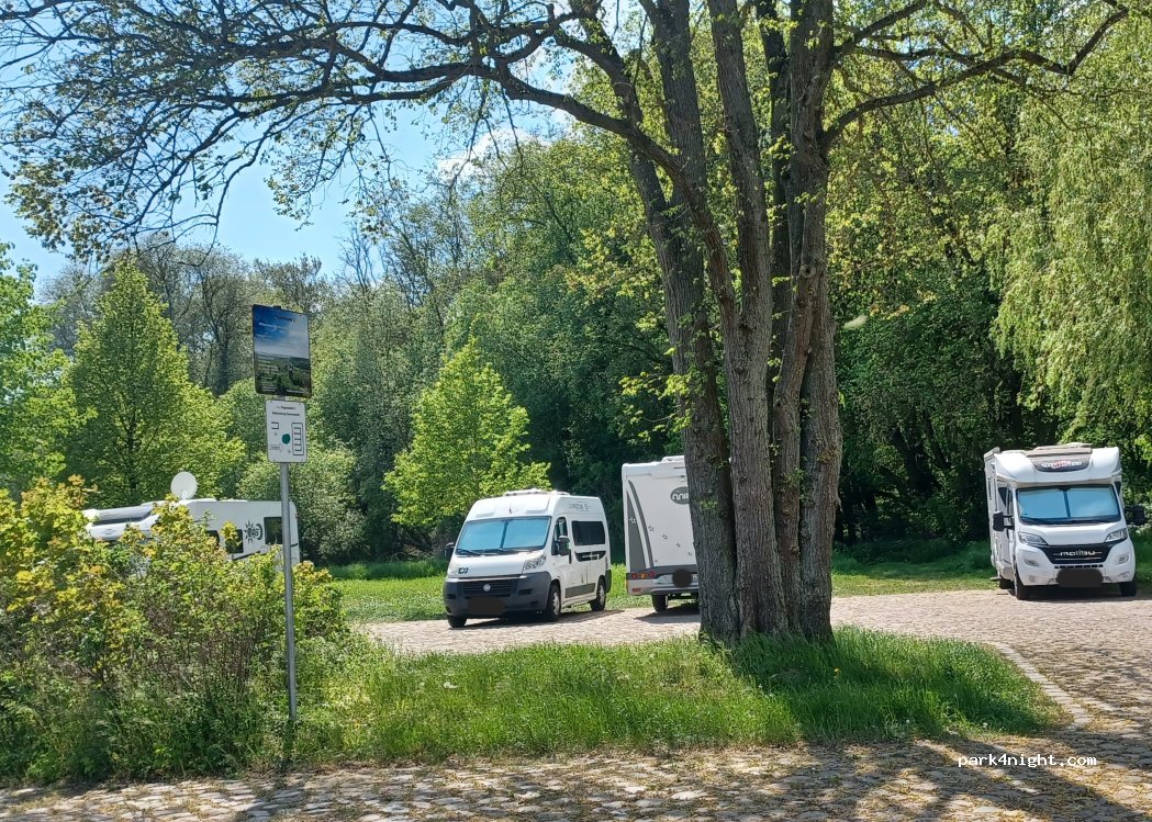 Man sollte das Schild beachten > PARKEN >> Zusatz Wohnmobile, also eigentlich nur für eine ÜN. Zudem nur auf der Plasterfläche erlaubt, wobei dies nicht eindeutig ist. Das Ordnungamt kontrolliert öfter und weist höflich, aber bestimmt, darauf hin. Das hier eingestellte Foto stellt also nicht die Realität dar. Aber Danke an die Gemeinde für diesen tollen Platz.