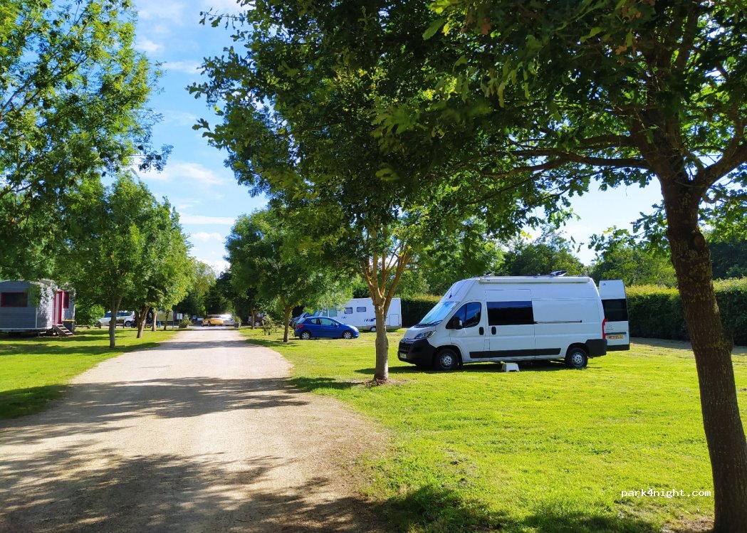 idéal parking sur herbe et endroit très tranquille. facile pour une visite de la petite cité de caractère..