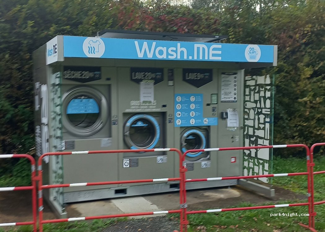 De quoi vider les eaux grises et noires, faire le plein d'eau (il faut des pièces de 1€) Du tri emballages + verres. Une laverie (paiement carte) Des emplacements en herbe, avec des arbres. Par contre zéro réseau 3G Nous n'avons fait que passer mais je met cette aire dans nos favoris.