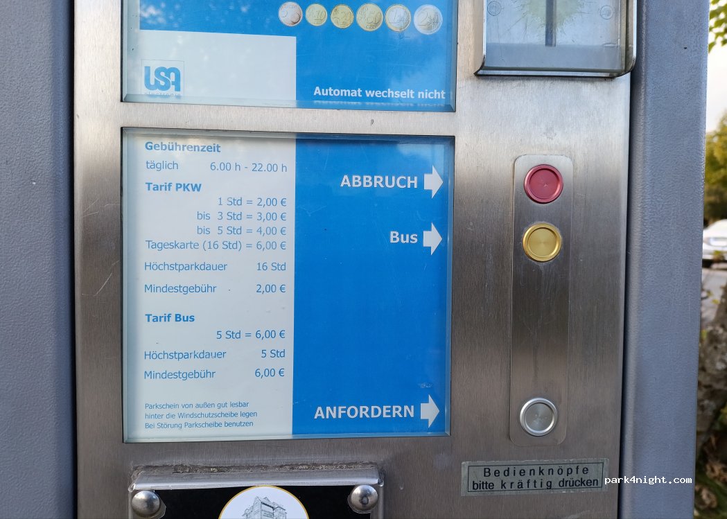 Die bisherigen Kommentare treffen zu. Es ist lediglich ein großer Parkplatz, der für Wohnmobile nicht gesperrt ist. Der "Tagestarif" von 5 € gilt für 16 h von 6-22 Uhr. WC-Türen öffnen sich für 50 ct. Nachts war es schön ruhig.