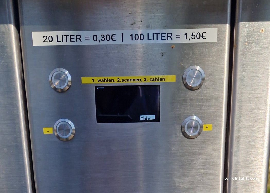 Leider sehr viel für das Wasser bezahlen müssen. über App bezahlt, 2,40€ für ca 30l. Echt unverschämt Daher auch nicht über Nacht geblieben