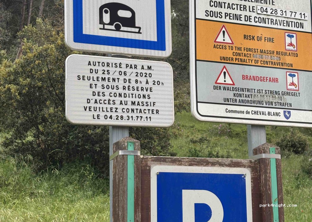 Top (car départ de randonnée très sympathique) mais c'est un parking de jour uniquement. Il y a un panneau qui précise l'interdiction de rester aux cc entre 20h et 8h. Le garde nous l'a confirmé et c'est 135 euros d'amende si vous êtes contrôlés. Nous avons respecté le site et sommes allés au parking de Taillades non loin et très adapté.