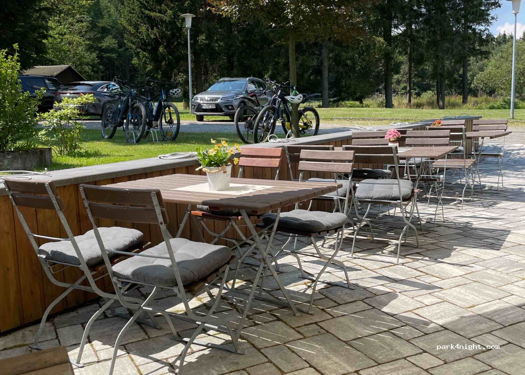 Ein wunderbarer Stellplatz mit einer wunderschönen Aussicht und sehr netten Betreibern. Brötchen können am Vortag bestellt werden. Ein gemütlicher Saunabesuch im Hotel ist gegen Aufpreis möglich und lohnt sich! Seifen ist ca 4 km entfernt. Zu Fuß kann man die Strecke sehr schön im Wald entlanglaufen. Wer Seifen besuchen möchte, sollte hier unbedingt halt machen. Vielen Dank