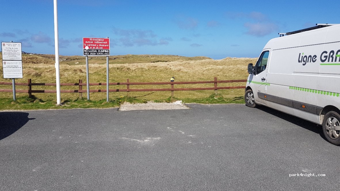 Parking of the flat beach without service in the vicinity of the airport sheltered from the wind