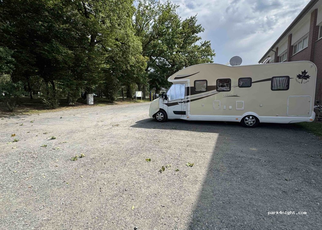 Wir konnten ruhig schlafen mit Blick auf den Park. Gut für einen Spaziergang mit dem Hund. Danke an die Stadt für diese freundliche Übernachtungsmöglichkeit.
