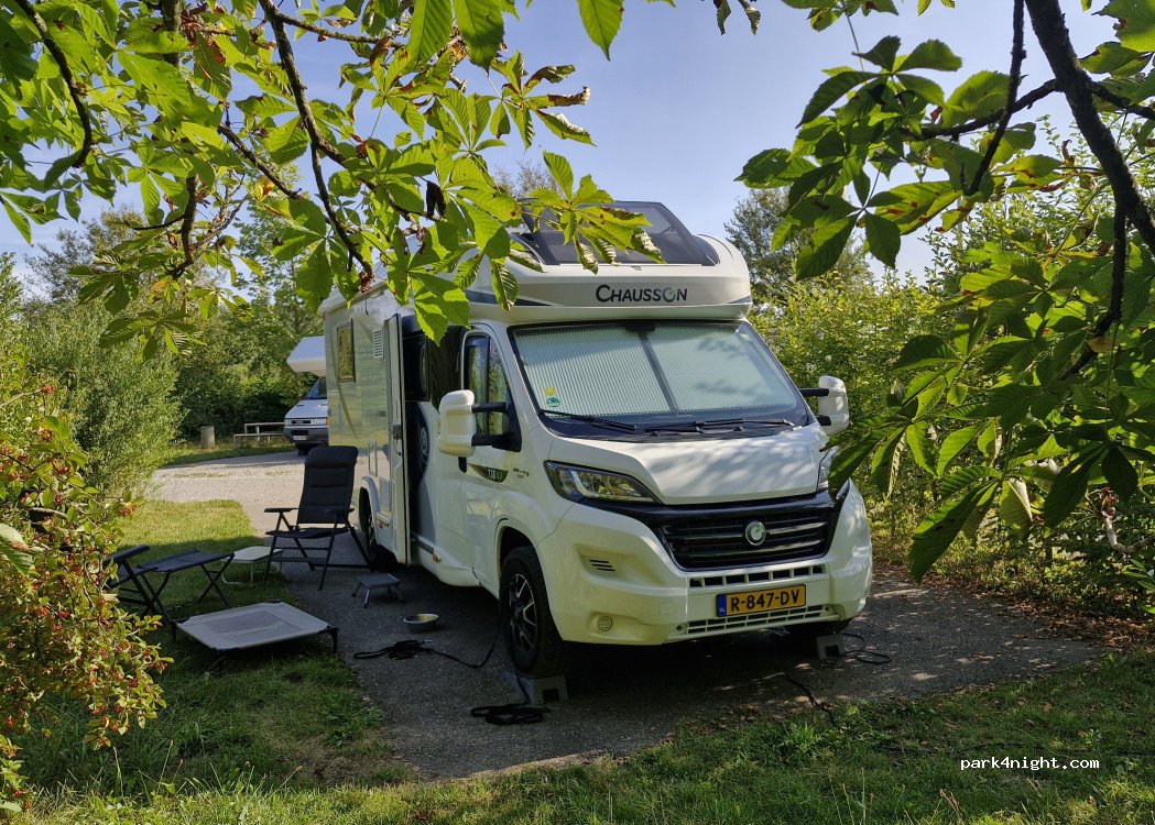 Bon emplacement avec eau et électricité. Il est situé directement sur une route, mais est protégé par une haie ou de grands buissons. Très calme la nuit.
