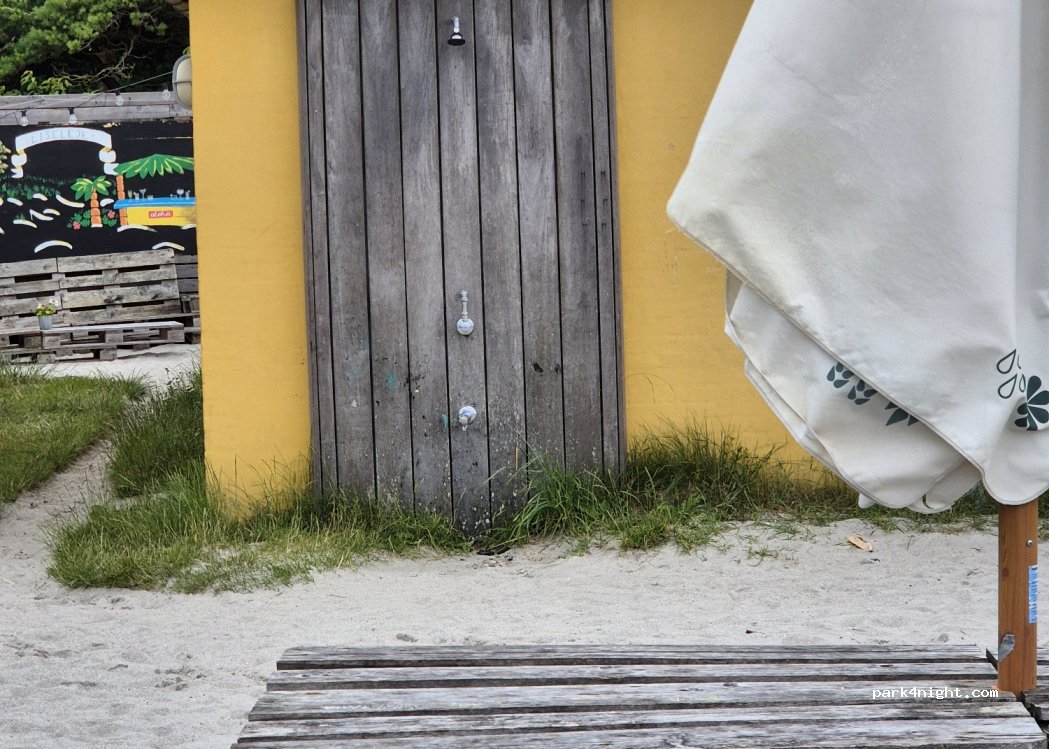 Relativ ruhiger Parkplatz, Außendusche direkt neben Kioskverkauf und ohne Trennwand, Sanitäranlagen ausreichend vorhanden und relativ sauber. Aufgrund der Dünen nicht so windig, jedoch kein "toller" Ausblick wie 5km weiter in Tisvildeleje