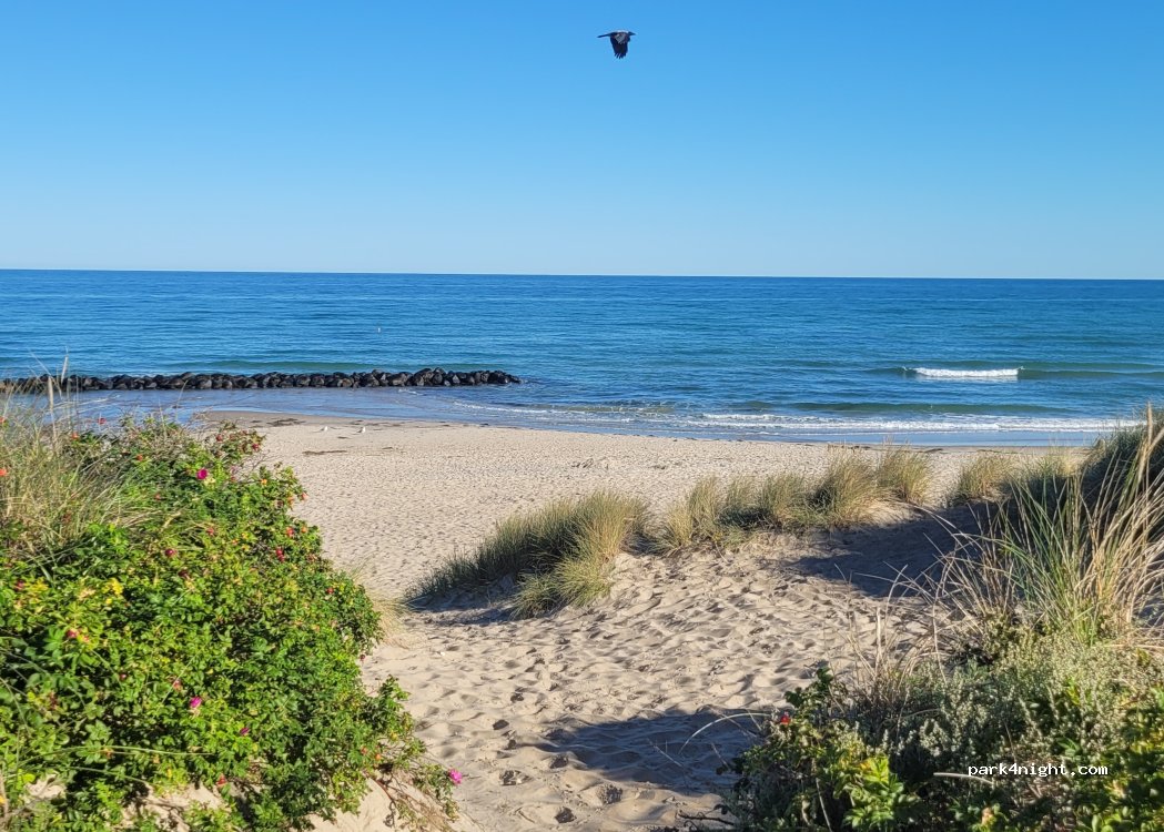 Free parking directly on the beach. . Toilets and outdoor showers. Beautiful city with one of the best bakeries!