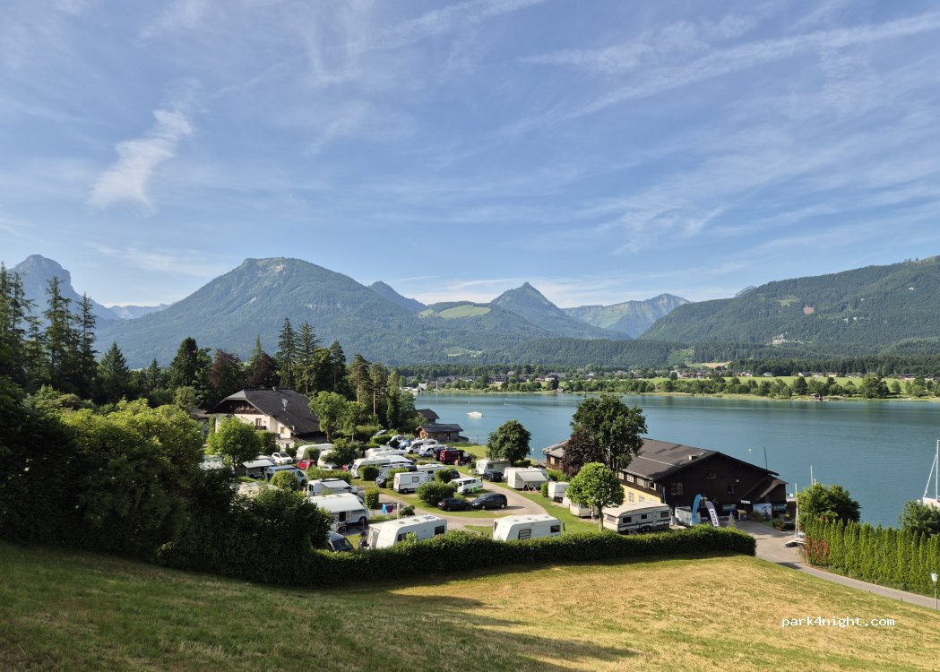 Great location, just on the outskirts of St Wolfgang, view of the lake, with access to the lake across a quiet road. Just under €30 a night, for a camper and two people. Very clean and tidy with friendly staff, even has its own bar area with a veranda, great place to chill and relax.